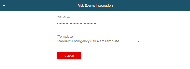 The configuration consists of entering the REI API Key obtained when configuring a Self-Service Risk Event Feed in the Everbridge Suite dashboard. An Alert Template must also be selected, which can be either the standard Emergency Call Alert template or a customized template, if needed.