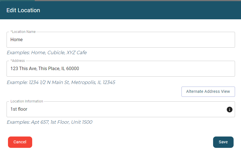 - The Edit Location form will appear. You can edit Location Name, Address, and Location Information.